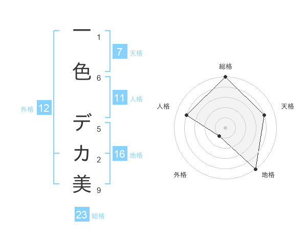 一色 デカ美さんを姓名の画数から五運を鑑定