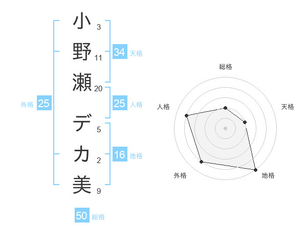 小野瀬 デカ美さんを姓名の画数から五運を鑑定