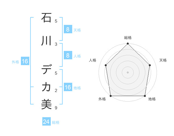 石川 デカ美さんを姓名の画数から五運を鑑定