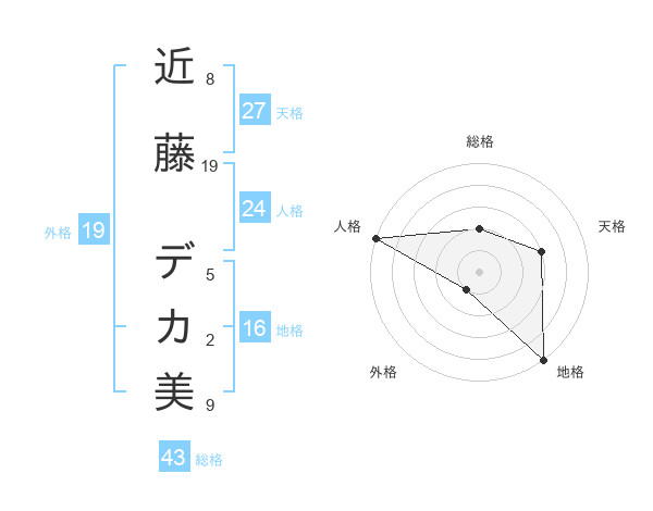 近藤 デカ美さんを姓名の画数から五運を鑑定