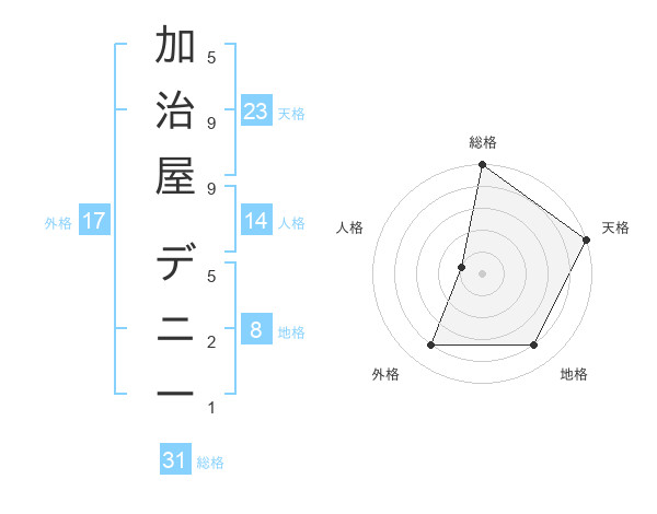 加治屋 デニーさんの天格は23画の5点!