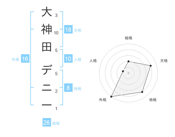 大神田 デニーさんの天格は18画の4点!