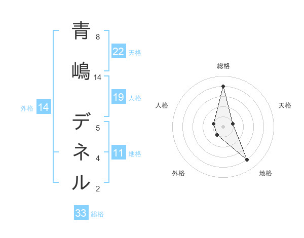 青嶋 デネルさんの天格は22画の1点!