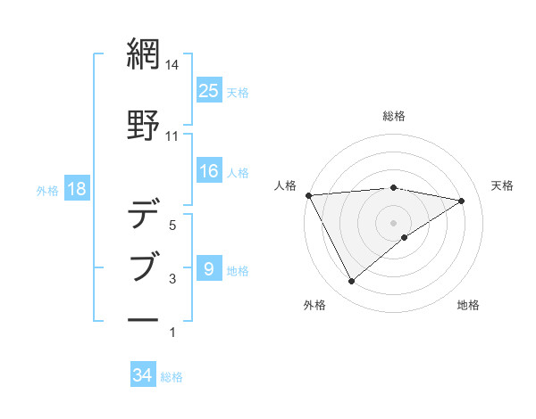 網野 デブ一さんの天格は25画の4点