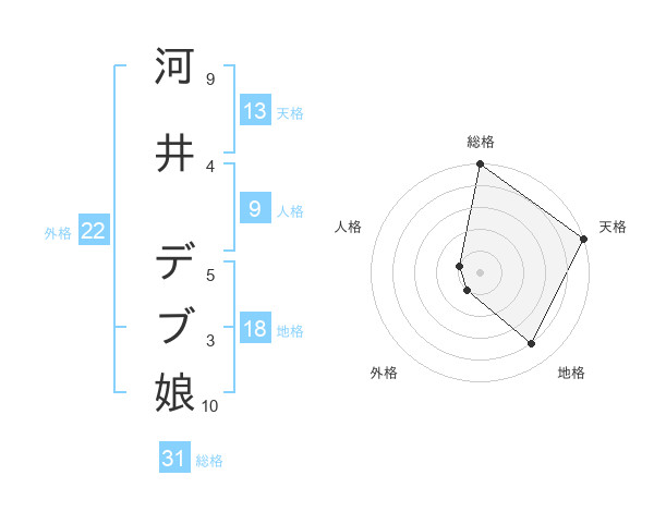 河井 デブ娘さんの総格は31画の5点!