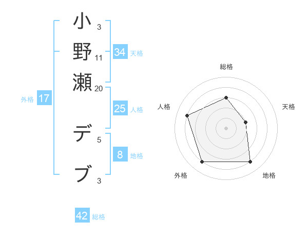 小野瀬 デブさんの総格は42画の3点!