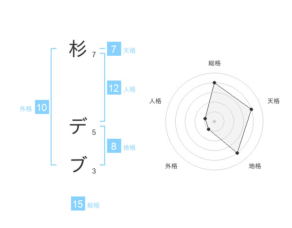 杉 デブさんの総格は15画の4点!