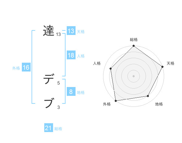 達 デブさんの天格は13画の5点!