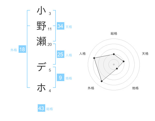 小野瀬 デホさんを姓名の画数から五運を鑑定