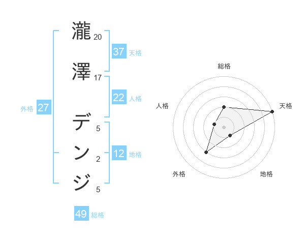 瀧澤 デンジさんを姓名の画数から五運を鑑定