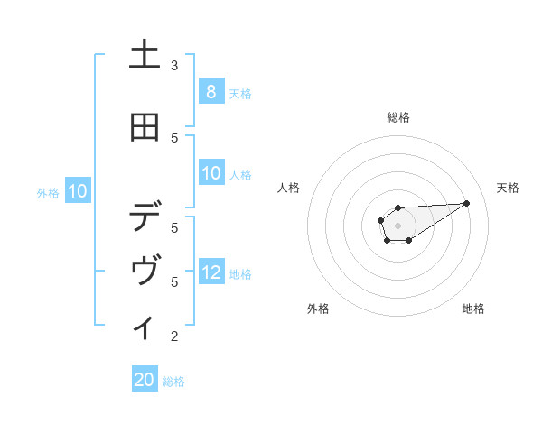 土田 デヴィさんを姓名の画数から五運を鑑定