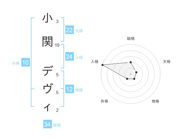 小関 デヴィさんの総格は34画の2点!