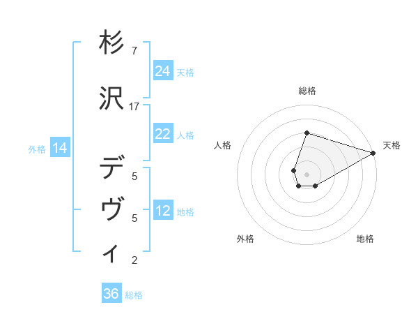 杉沢 デヴィさんの天格は24画の5点!