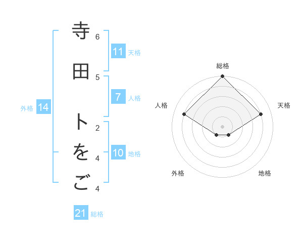 寺田 トをごさんの総格は21画の5点!