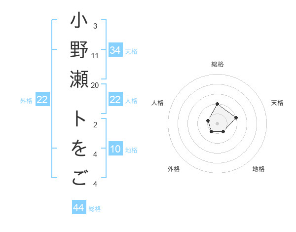 小野瀬 トをごさんを姓名の画数から五運を鑑定