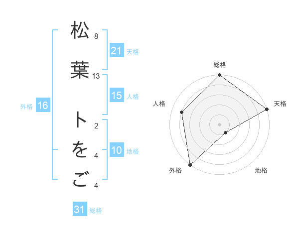 松葉 トをごさんを姓名の画数から五運を鑑定
