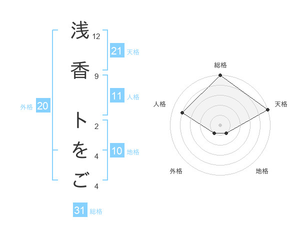浅香 トをごさんの総格は31画の5点