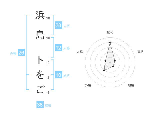 浜島 トをごさんを姓名の画数から五運を鑑定