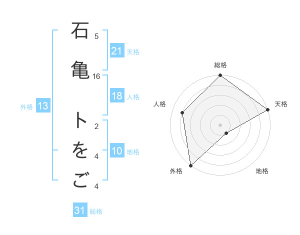 石亀 トをごさんを姓名の画数から五運を鑑定