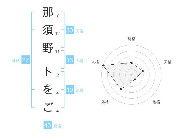 那須野 トをごさんを姓名の画数から五運を鑑定