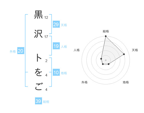 黒沢 トをごさんを姓名の画数から五運を鑑定