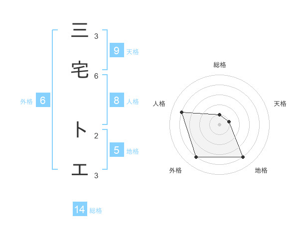 三宅 トエさんの外格は6画の4点!
