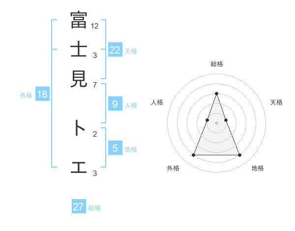 富士見 トエさんの総格は27画の3点!