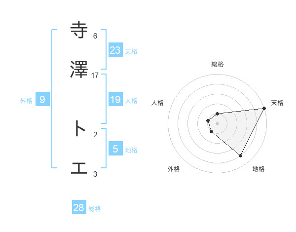 寺澤 トエさんを姓名の画数から五運を鑑定