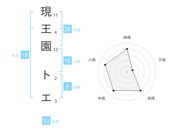 現王園 トエさんの総格は33画の4点!