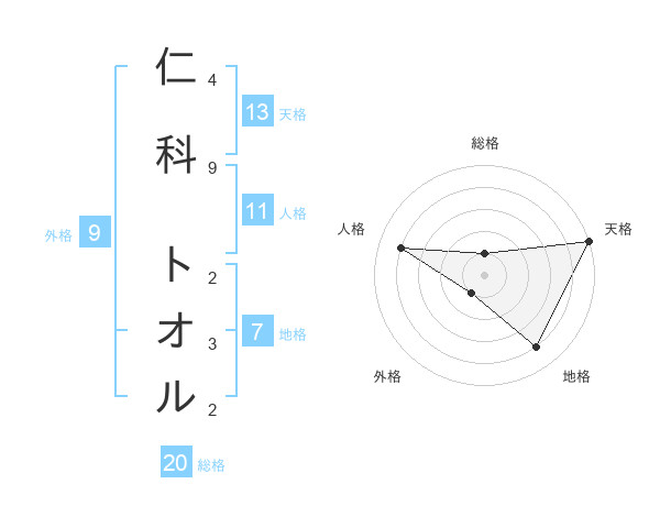 仁科 トオルさんを姓名の画数から五運を鑑定