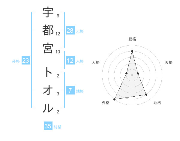 宇都宮 トオルさんの総格は35画の4点!