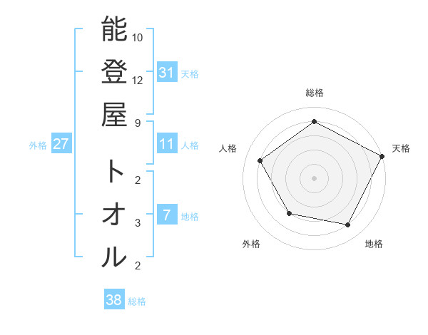 能登屋 トオルさんを姓名の画数から五運を鑑定