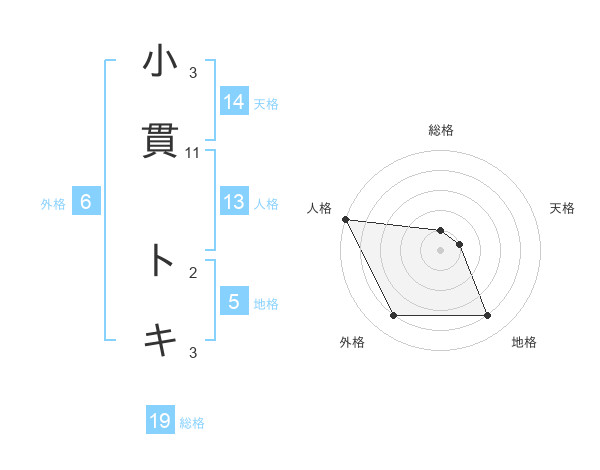 小貫 トキさんの地格は5画の4点!