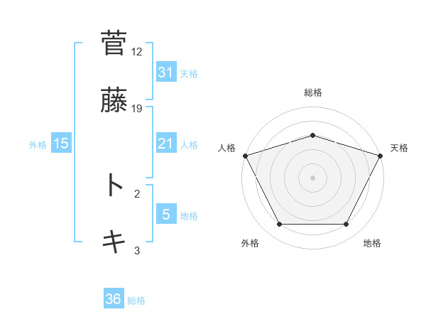 菅藤 トキさんの天格は31画の5点!