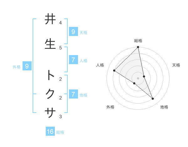 井生 トクサさんの総格は16画の5点!