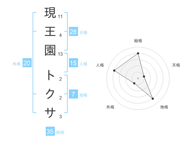 現王園 トクサさんを姓名の画数から五運を鑑定