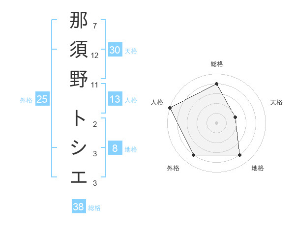 那須野 トシエさんを姓名の画数から五運を鑑定