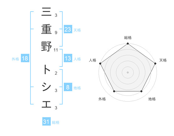 三重野 トシエさんを姓名の画数から五運を鑑定