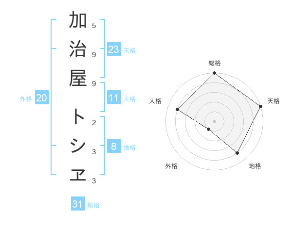 加治屋 トシヱさんを姓名の画数から五運を鑑定
