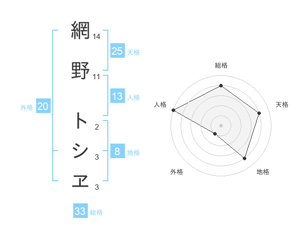 網野 トシヱさんの総格は33画の4点!