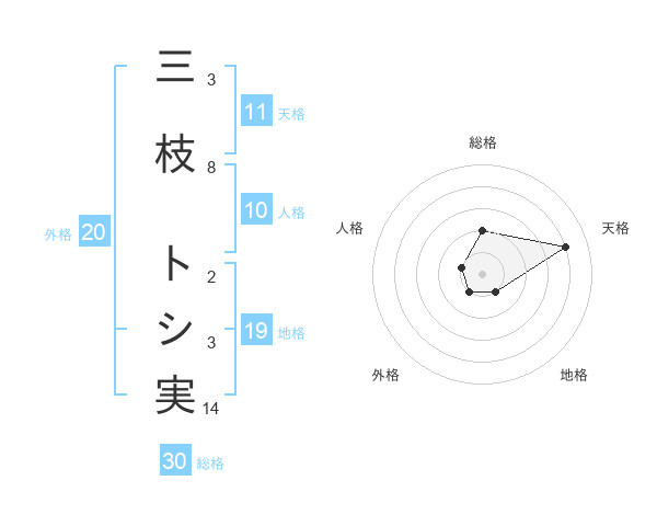 三枝 トシ実さんを姓名の画数から五運を鑑定