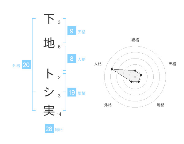 下地 トシ実さんの総格は28画の1点