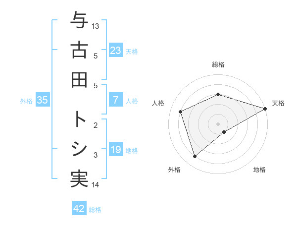与古田 トシ実さんの天格は23画の5点!