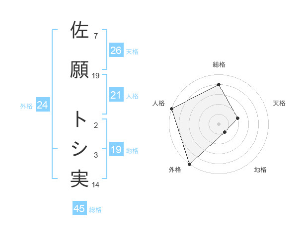 佐願 トシ実さんを姓名の画数から五運を鑑定
