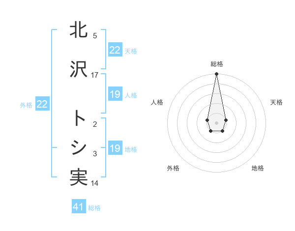 北沢 トシ実さんを姓名の画数から五運を鑑定