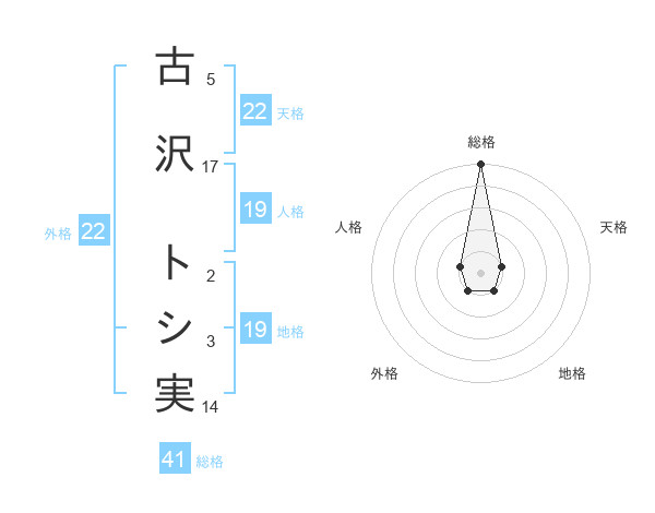 古沢 トシ実さんを姓名の画数から五運を鑑定