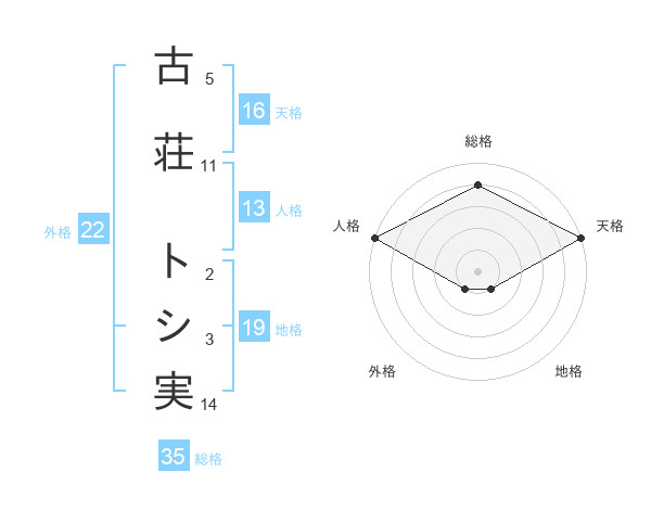 古荘 トシ実さんを姓名の画数から五運を鑑定