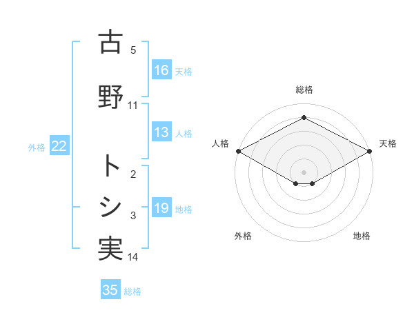 古野 トシ実さんを姓名の画数から五運を鑑定