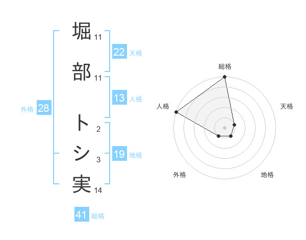 堀部 トシ実さんを姓名の画数から五運を鑑定