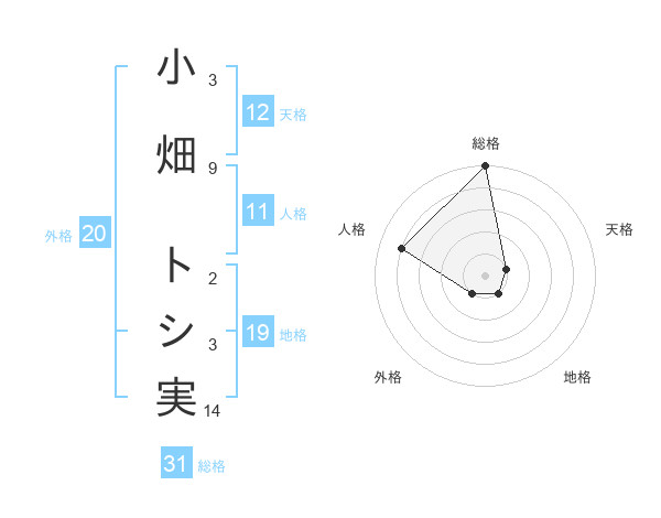 小畑 トシ実さんの総格は31画の5点!